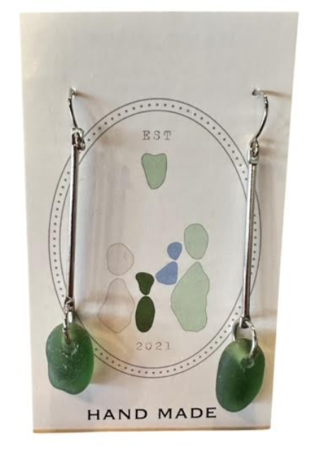 Silver Bar Drop Earrings w/ Green Sea Glass