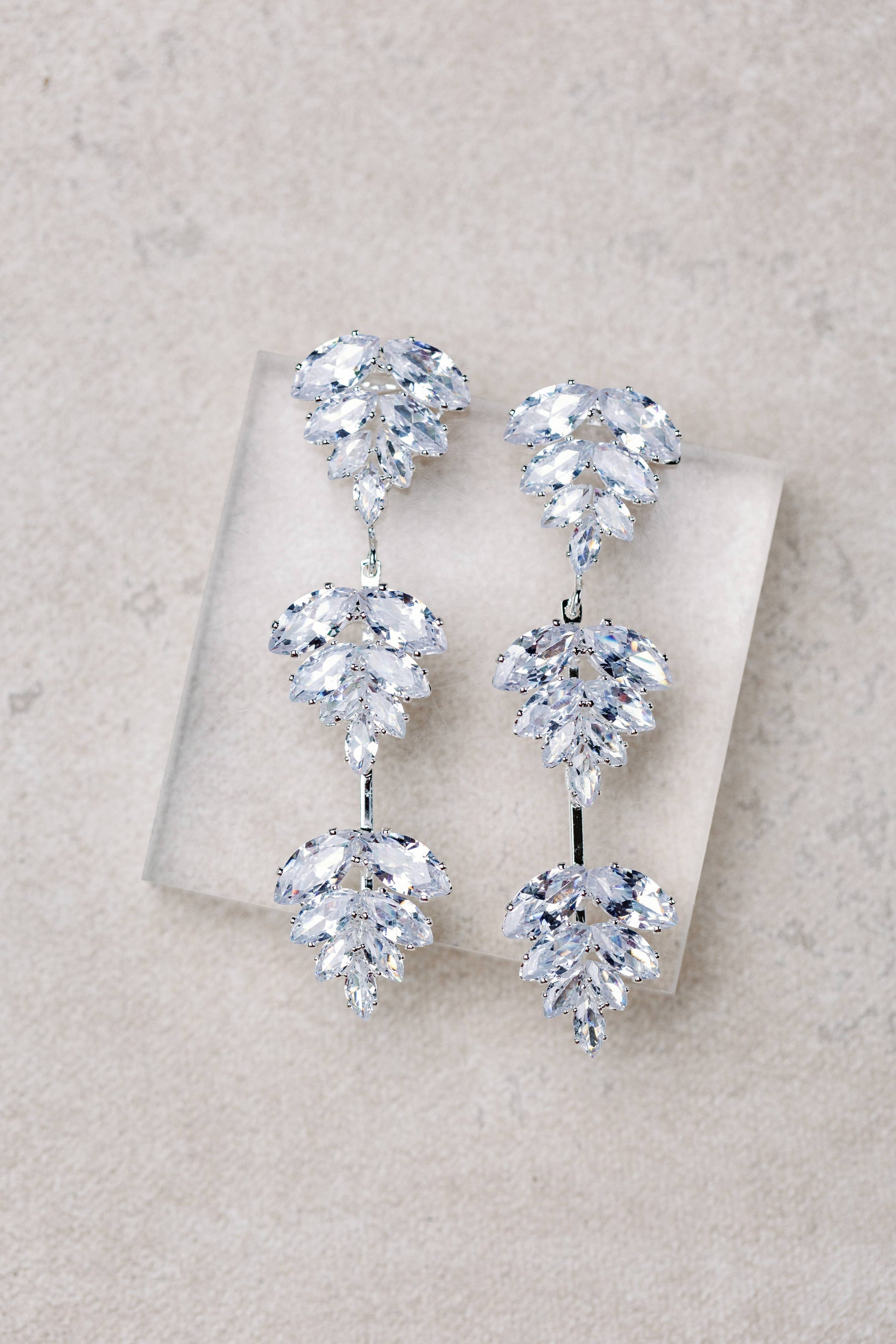 Embrace tropical vibes with our stunning crystal palm tree statement earrings, measuring 3 inches in length - perfect for Christmas and holiday. These dazzling earrings feature three intricate crystal palm leaf motifs that capture the light beautifully, adding a touch of sparkle to your holiday looks.